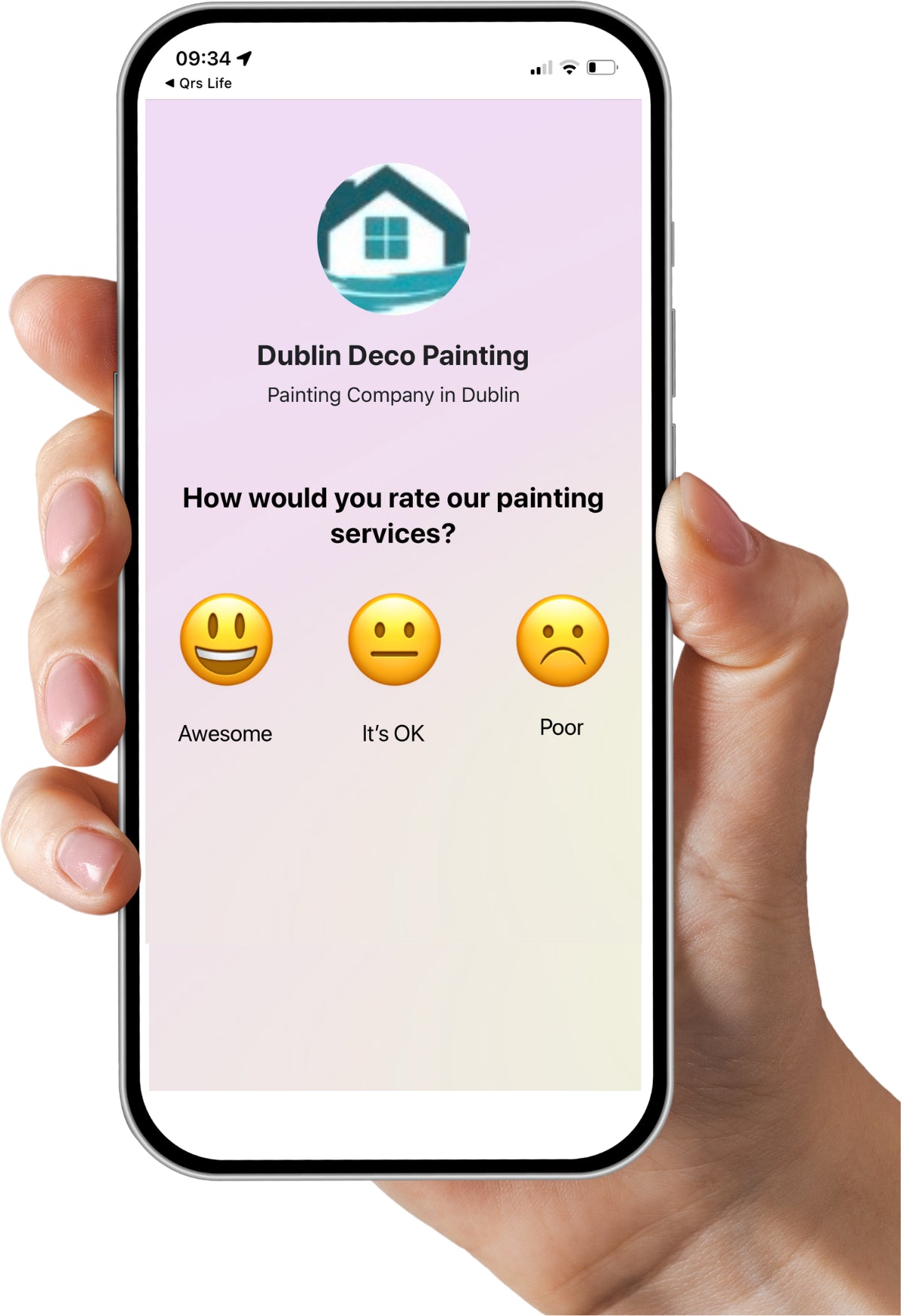 Nothing simpler. Your QR code will be specifically designed to direct your customers to a landing page where, depending on the choices they make, they will get to leave a review on Google Maps or share their opinions directly with you, in private, via e-mail.
